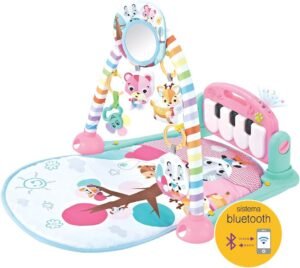 Maxibaby Tapete de Atividades com Piano Musical e Bluetooth Pastime 2.0 com Arco de Brinquedos Interativos, Desenhos e Formas em Cores Vibrantes, Rosa